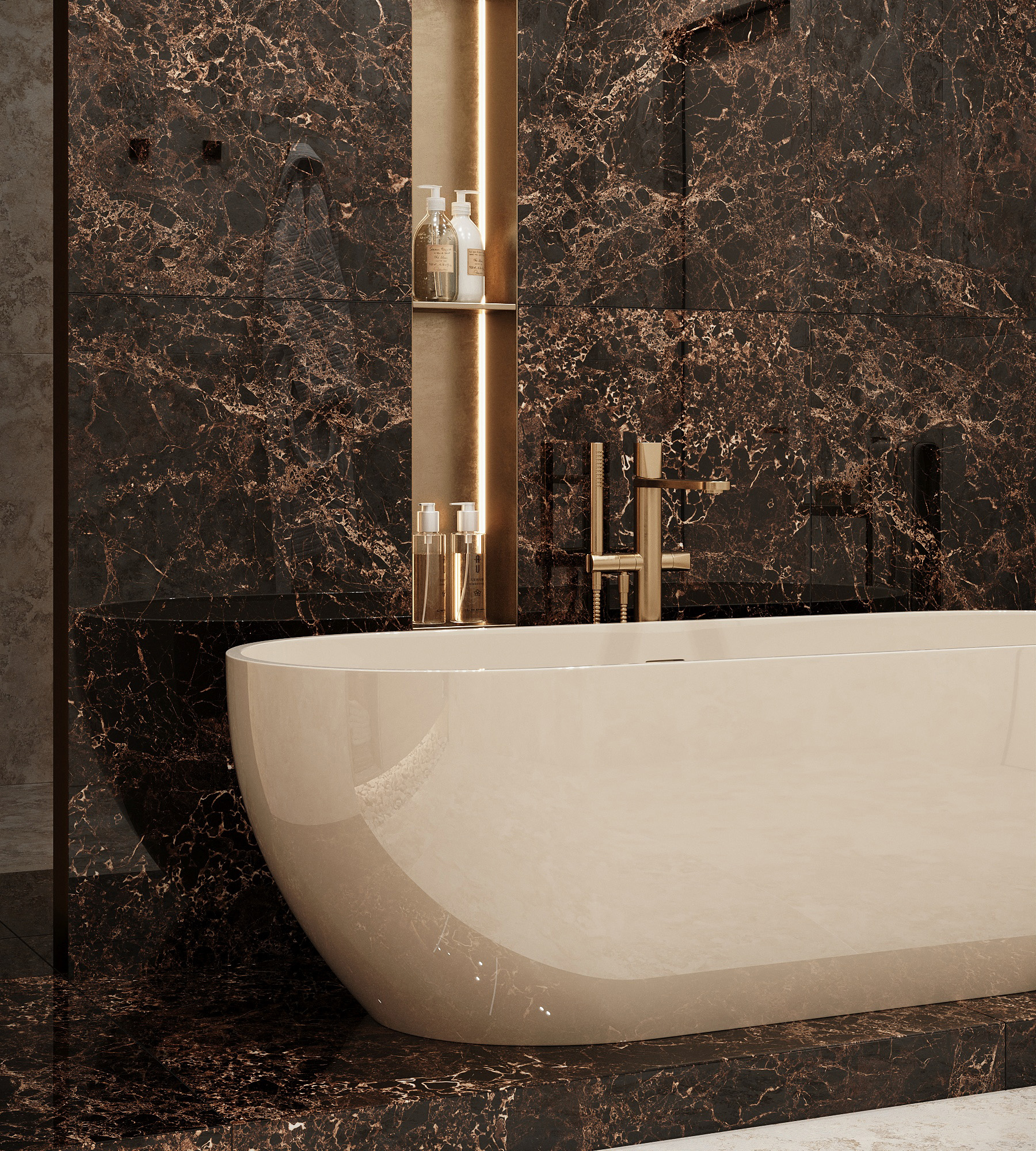 VATICAN EMPERADOR — это роскошный керамогранит с изысканным рисунком, имитирующим благородный мрамор, который придаёт любому интерьеру неповторимую атмосферу и элегантность. Каждый квадратный метр этого удивительного материала словно рассказывает свою собственную историю благодаря многогранности оттенков, которые идеально сочетаются между собой. Глубокий чёрный цвет гармонично переплетается с контрастными золотистыми линиями, создавая эффект натурального камня, что делает его настоящим акцентом в интерьере. Полированная зеркальная поверхность по технологии HIGH GLOSS не только усиливает визуальный глянец, но и отражает каждую деталь, наполняя комнату светом и создавая атмосферу уюта. Его универсальность позволяет без труда комбинировать с другими материалами — дерево, стекло, металл и даже текстиль, что открывает широкие возможности для дизайнерских решений. От спокойных и минималистичных интерьеров до ярких и экстравагантных — этот материал станет идеальной основой для воплощения любых идей.Тон и калибр плитки может отличаться. Тон плитки — цветовой нюанс определенной партии продукции. Расцветки и эстетические характеристики керамогранита на экране монитора могут отличаться от реального. Указанные на сайте размеры (калибр плитки) — номинальные. Фактический размер плитки будет отклоняться от номинального в пределах определенного калибра, как в меньшую, так и в большую сторону.
