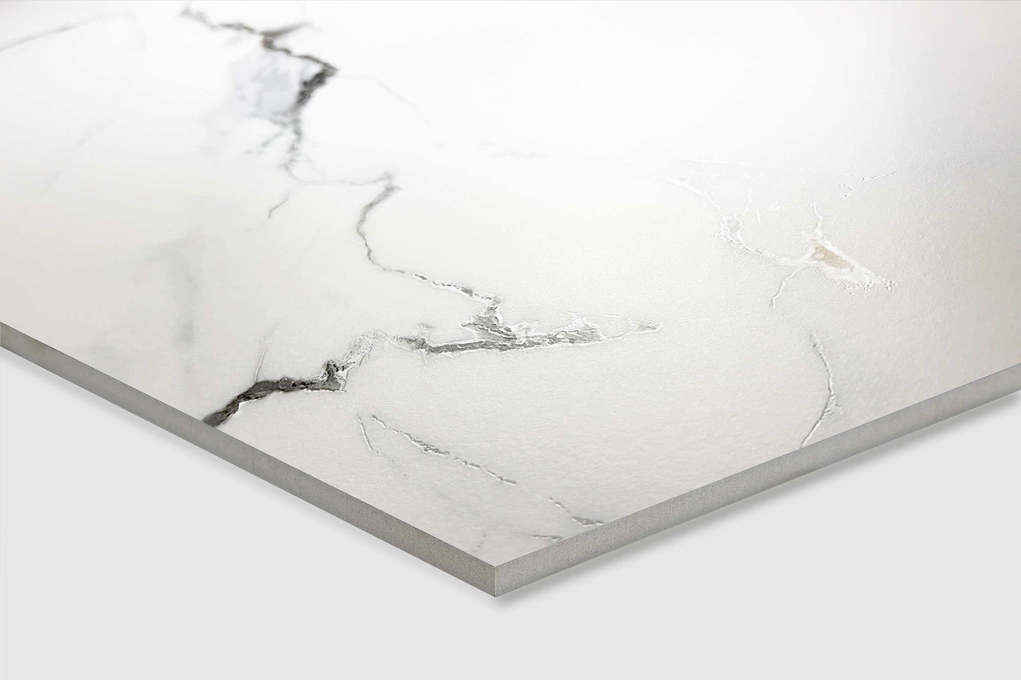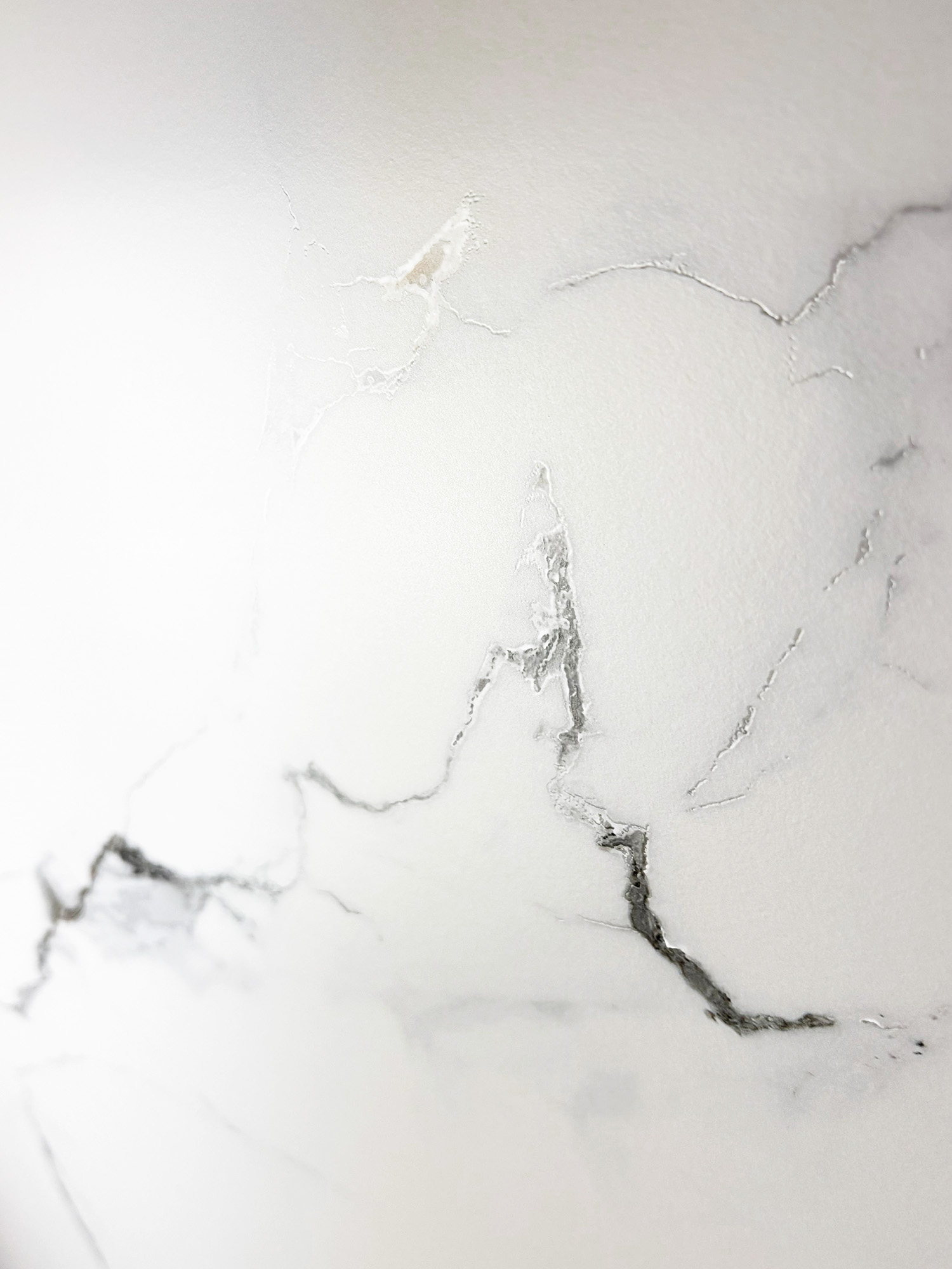 Материал с эффектом «мрамор» в оттенке «белый» подойдет для практичной и долговечной отделки, а также для современных интерьеров.