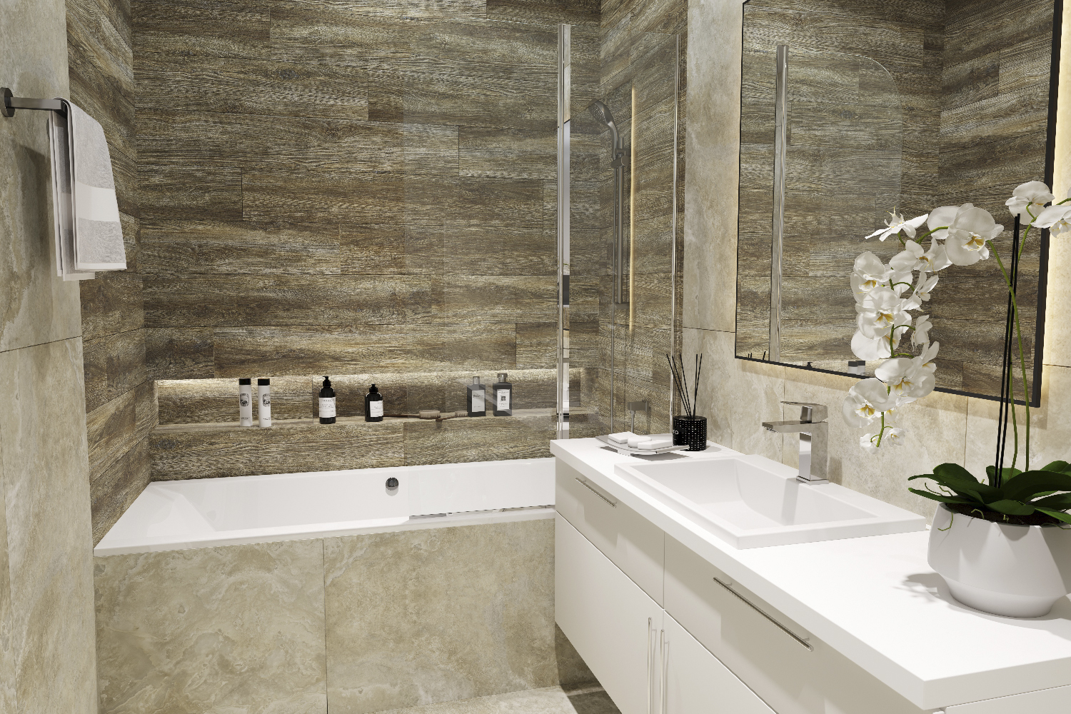 Подходит для интерьеров в современном стиле: ванная, кухня, санузел, коридор, гостиная, коммерческие помещения.